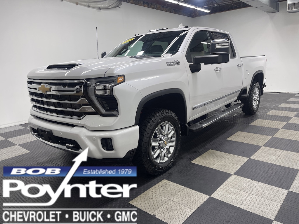 Check out this 2024 Chevrolet Silverado 3500HD High Country. Its Automatic transmission and Turbocharged Diesel V8 6.6L/ engine will keep you going. This Chevrolet Silverado 3500HD has the following options: Z71 OFF-ROAD PACKAGE includes (Z71) Off-Road suspension with off-road tuned twin tube Rancho shocks, (JHD) Hill Descent Control and (NZZ) skid plates (transfer case and oil pan), WINTER GRILLE COVER, TRANSMISSION, ALLISON 10-SPEED AUTOMATIC, TIRES, LT275/65R20 ALL-TERRAIN, BLACKWALL (STD), TECHNOLOGY PACKAGE includes (DRZ) Rear Camera Mirror and (UV6) 15" Diagonal Head-Up Display (Includes (KSG) Adaptive Cruise Control., SUNROOF, POWER ON CREW CAB MODELS, SNOW PLOW PREP/CAMPER PACKAGE includes (KW5) 220-amp alternator, includes increased front GAWR on Heavy Duty models, (NZZ) skid plates (transfer case and oil pan), pass through dash grommet hole and roof emergency light provisions., SKID PLATES protect the oil pan, front axle and transfer case, SEATS, FRONT BUCKET WITH CENTER CONSOLE, FOR CREW CAB AND DOUBLE CAB MODELS (STD), and REAR CAMERA MIRROR inside rearview auto-dimming with full camera display. See it for yourself at Bob Poynter GM, 1209 E Tipton St, Seymour, IN 47274.