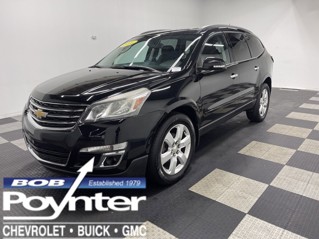 *3rd Row Seating Rear Entertainment Bose Audio *Look at this 2016 Chevrolet Traverse LT. Its Automatic transmission and Gas V6 3.6L/217 engine will keep you going. This Chevrolet Traverse comes equipped with these options: WHEELS, 4 - 20" X 7.5" (50.8 CM X 19.1 CM) PAINTED ALUMINUM, UNIVERSAL HOME REMOTE includes garage door opener, 3-channel programmable, TRAVELER'S PACKAGE includes (UI4) Chevrolet MyLink radio, (U42) rear seat entertainment system, (UQS) Bose 5.1 surround sound 10-speaker system, (KV1) 120-volt power outlet, (ULD) rear audio controls and (CJ2) automatic air conditioning, TRANSMISSION, 6-SPEED AUTOMATIC (STD), TIRES, P255/55R20 H-RATED, BLACKWALL, STYLE AND TECHNOLOGY PACKAGE includes (UI6) Chevrolet MyLink radio, (KA1) heated driver and front passenger seats, (UG1) Universal Home Remote, (QQD) P255/55R20 H-rated blackwall tires, (PJG) 4 - 20" x 7.5" (50.8 cm x 19.1 cm) painted aluminum wheels and (NV7) variable effort power steering, STEERING, POWER, VARIABLE EFFORT, SEATS, HEATED DRIVER AND FRONT PASSENGER, SEATING, 7-PASSENGER (2-2-3 SEATING CONFIGURATION) with 2nd row flat-folding Captains Chair and third row 60/40 split flat folding bench seat, and RECLINING FRONT BUCKETS (STD). Test drive this vehicle at Bob Poynter GM, 1209 E Tipton St, Seymour, IN 47274.