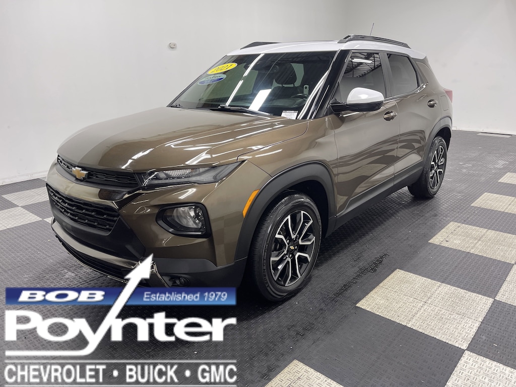 Check out this 2021 Chevrolet Trailblazer ACTIV. Its Variable transmission and Gas I3 1.3L/ engine will keep you going. This Chevrolet Trailblazer features the following options: VISORS, DRIVER AND FRONT PASSENGER ILLUMINATED VANITY MIRRORS, COVERED, SLIDING, USB CHARGING-ONLY PORTS one type-A and one type-C, charging only, located on rear of center console, TRANSMISSION, CONTINUOUSLY VARIABLE (CVT) (STD), SUNROOF, POWER, DUAL-PANE, PANORAMIC, SUN AND LIFTGATE PACKAGE includes (C3U) power, dual-pane, panoramic sunroof and (TC2) power, programmable hands-free liftgate with LED logo projection, SUMMIT WHITE TWO-TONE ROOF, SIRIUSXM RADIO enjoy an All Access trial subscription with over 150 channels including commercial-free music, plus sports, news and entertainment. Plus listening on the SiriusXM app, online and at home on compatible connected devices is included, so you'll hear the best SiriusXM has to offer, anywhere life takes you. Welcome to the world of SiriusXM., SENSOR, CABIN HUMIDITY, SEATS, FRONT BUCKET (STD), and REAR PARK ASSIST. See it for yourself at Bob Poynter GM, 1209 E Tipton St, Seymour, IN 47274.