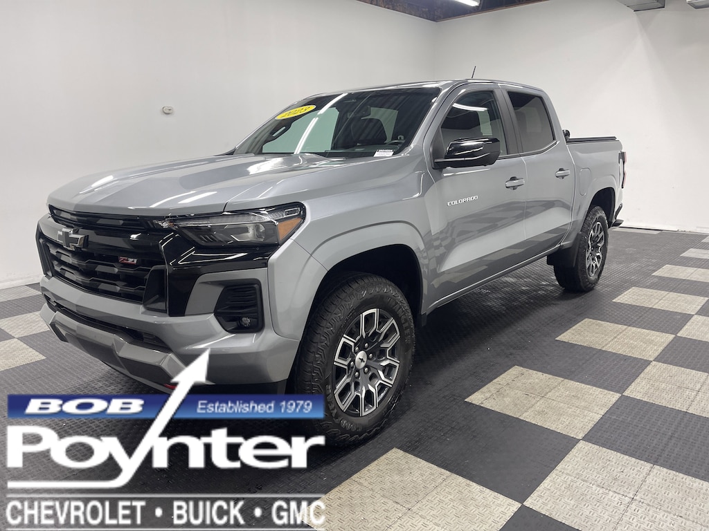 Come see this 2023 Chevrolet Colorado 4WD Z71. Its Automatic transmission and Turbocharged Gas I4 2.7L/ engine will keep you going. This Chevrolet Colorado has the following options: Z71 PREFERRED EQUIPMENT GROUP includes standard equipment, Z71 CONVENIENCE PACKAGE III includes (HUQ) Perforated leather-appointed front seating, (E90) Driver seat back pocket, (DA5) Rear center arm rest, (A45) Driver memory settings, (KU9) Ventilated front seats, (KI3) Heated steering wheel and (B26) Safety Package, Z71 CONVENIENCE PACKAGE II includes (CJ2) Dual-zone automatic climate control, (N37) Tilt and Telescopic steering column, (PPA) EZ lift and lower tailgate, (A2X) 8-way power driver seat, (AL9) Power driver seat lumbar, (KA1) Heated front seats, (BTV) Remote start, (DD8) Auto dimming inside rearview mirror, (BPC) StowFlex Tailgate, (BDR) Locking Cylinder and (K4C) Wireless charging, WIRELESS CHARGING, WHEELS, 18" X 8.5" (45.7 CM X 21.6 CM) ANDROID DARK FULL GLOSS ALUMINUM (STD), TRANSMISSION, 8-SPEED AUTOMATIC (STD), TRAILERING PACKAGE, HEAVY-DUTY includes trailer hitch and 7-pin connector, TRAILERING APP, TRAILER BRAKE CONTROLLER, INTEGRATED, and TIRES, 265/65R18 ALL-TERRAIN, BLACKWALL, 32" OD (STD). Test drive this vehicle at Bob Poynter GM, 1209 E Tipton St, Seymour, IN 47274.