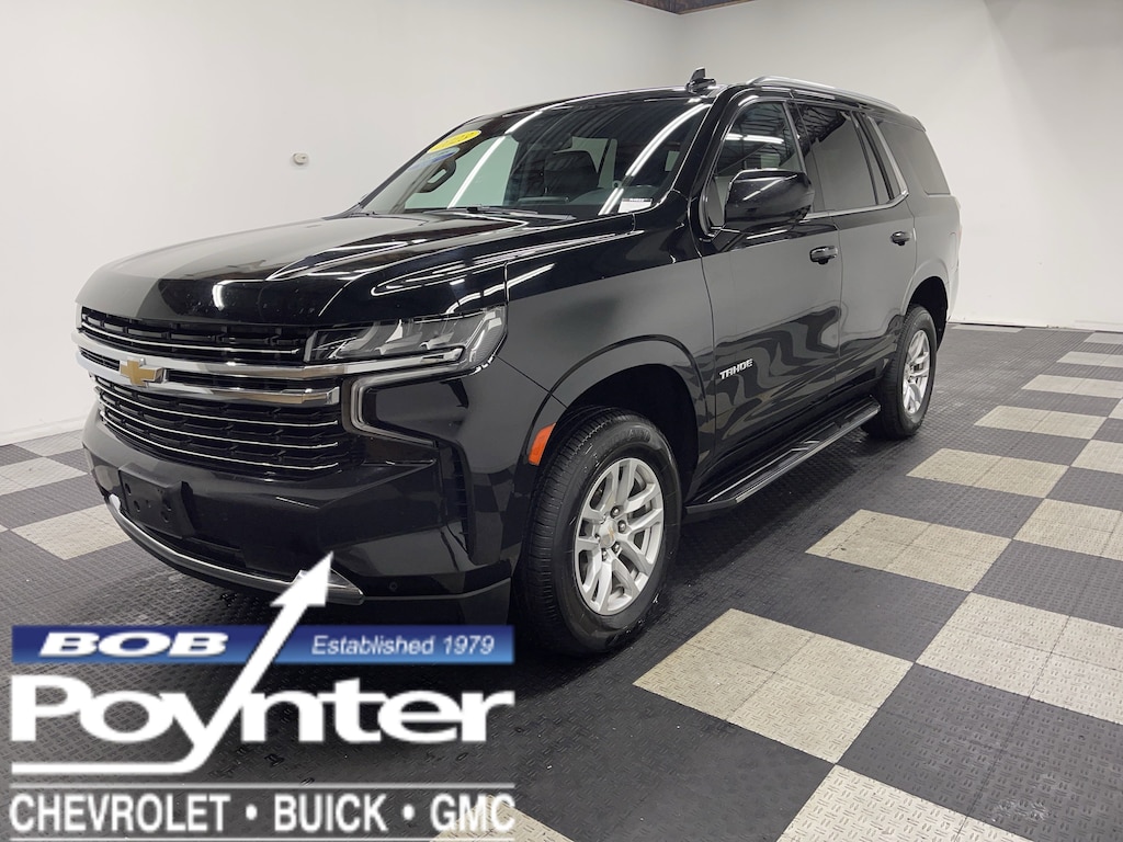 Check out this 2023 Chevrolet Tahoe LT. Its Automatic transmission and Gas V8 5.3L/ engine will keep you going. This Chevrolet Tahoe comes equipped with these options: WHEELS, 18" X 8.5" (45.7 CM X 21.6 CM) BRIGHT SILVER PAINTED ALUMINUM (STD), TRANSMISSION, 10-SPEED AUTOMATIC electronically controlled with overdrive, includes Traction Select System including tow/haul (Standard with (L84) 5.3L EcoTec3 V8 engine only.) (STD), TIRES, 265/65R18SL ALL-SEASON, BLACKWALL (STD), SEATS, FRONT BUCKET (STD), REAR AXLE, 3.23 RATIO, LT PREFERRED EQUIPMENT GROUP includes Standard Equipment, LICENSE PLATE FRONT MOUNTING PACKAGE, JET BLACK, LEATHER-APPOINTED SEATING SURFACES 1ST AND 2ND ROW, GVWR, 7500 LBS. (3402 KG) (STD), and ENGINE, 5.3L ECOTEC3 V8 with Dynamic Fuel Management, Direct Injection and Variable Valve Timing, includes aluminum block construction (355 hp [265 kW] @ 5600 rpm, 383 lb-ft of torque [518 Nm] @ 4100 rpm) (STD). See it for yourself at Bob Poynter GM, 1209 E Tipton St, Seymour, IN 47274.
