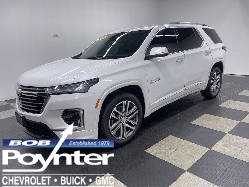 Come see this 2023 Chevrolet Traverse High Country. Its Automatic transmission and Gas V6 3.6L/217 engine will keep you going. This Chevrolet Traverse has the following options: WHEELS, 20" (50.8 CM) POLISHED ALUMINUM (STD), TRANSMISSION, 9-SPEED AUTOMATIC (STD), SEATS, FRONT BUCKET (STD), LICENSE PLATE FRONT MOUNTING PACKAGE (will be forced on orders with ship-to states that require a front license plate), JET BLACK/CLOVE, PERFORATED LEATHER-APPOINTED SEAT TRIM, IRIDESCENT PEARL TRICOAT, HIGH COUNTRY PREFERRED EQUIPMENT GROUP Includes Standard Equipment, ENGINE, 3.6L V6, SIDI, VVT (310 hp [232.0 kW] @ 6800 rpm, 266 lb-ft of torque [361 N-m] @ 2800 rpm) (STD), AUDIO SYSTEM, CHEVROLET INFOTAINMENT 3 PLUS SYSTEM with connected Navigation, 8" diagonal HD color touchscreen, AM/FM stereo, Bluetooth audio streaming for 2 active devices, Apple CarPlay and Android Auto capable, enhanced voice recognition, in-vehicle apps, cloud connected personalization for select infotainment and vehicle settings. Subscription required for enhanced and connected services after trial period (STD), and Wireless Phone Charging. Stop by and visit us at Bob Poynter GM, 1209 E Tipton St, Seymour, IN 47274.