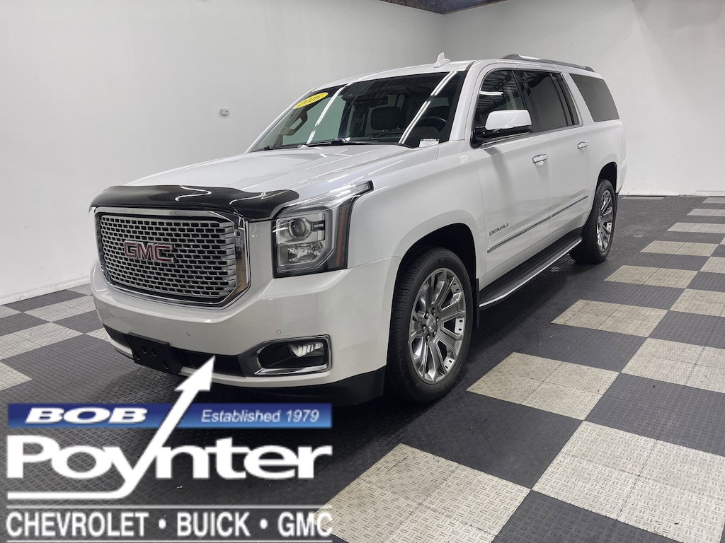 Look at this 2016 GMC Yukon XL Denali. Its Automatic transmission and Gas V8 6.2L/378 engine will keep you going. This GMC Yukon XL has the following options: WHITE FROST TRICOAT, WHEELS, 22" X 8.5" (55.9 CM X 21.6 CM) ALUMINUM WITH CHROME INSERTS, TRANSMISSION, 8-SPEED AUTOMATIC (STD), TIRES, P285/45R22, ALL SEASON, BLACKWALL, THEFT-DETERRENT ALARM SYSTEM content theft alarm, self-powered horn, SUNROOF, POWER, TILT-SLIDING with express-open and close and wind deflector, SENSOR, VEHICLE INTERIOR MOVEMENT will detect movement within the cabin of the vehicle, SENSOR, VEHICLE INCLINATION will detect vehicle being towed or jacked up, SEATS, SECOND ROW BUCKET, POWER RELEASE (STD), and SEATS, FRONT BUCKET WITH PERFORATED LEATHER-APPOINTED heated and cooled seat cushions, 12-way power driver and passenger seat includes 6-way power cushions, driver seat 2-position memory, 4-way power lumbar control and power recline (STD). Test drive this vehicle at Bob Poynter GM, 1209 E Tipton St, Seymour, IN 47274.
