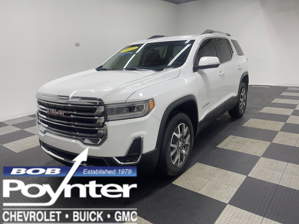 Come see this 2023 GMC Acadia SLE. Its Automatic transmission and Turbocharged Gas I4 2.0L/ engine will keep you going. This GMC Acadia features the following options: WHEELS, 18" (45.7 CM) MACHINED ALUMINUM WITH DARK ACCENTS (STD), TRANSMISSION, 9-SPEED AUTOMATIC, ELECTRONICALLY-CONTROLLED with 2.0L Turbo engine (STD), TIRES, P235/65R18 ALL-SEASON BLACKWALL (STD), SUMMIT WHITE, SLE PREFERRED EQUIPMENT GROUP Includes Standard Equipment, SEATS, HEATED DRIVER AND FRONT PASSENGER, SEATS, FRONT BUCKET (STD), SEATING, 6-PASSENGER (2-2-2 SEATING CONFIGURATION) with 2nd row flat-folding captain's chairs with Smart Slide and 3rd row manual-folding 50/50 split-bench seat (STD), SEAT ADJUSTER, POWER DRIVER LUMBAR CONTROL, and SEAT ADJUSTER, DRIVER 8-WAY POWER. Stop by and visit us at Bob Poynter GM, 1209 E Tipton St, Seymour, IN 47274.