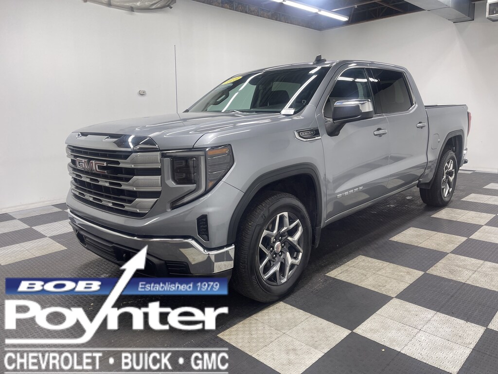 Come see this 2023 GMC Sierra 1500 SLE. Its Automatic transmission and Gas V8 5.3L/325 engine will keep you going. This GMC Sierra 1500 features the following options: WHEELS, 20" POLISHED ALUMINUM WHEELS with technical gray painted accents, TRANSMISSION, 10-SPEED AUTOMATIC, (COLUMN SHIFTER) ELECTRONICALLY CONTROLLED with overdrive and tow/haul mode. Includes Cruise Grade Braking and Powertrain Grade Braking, TIRES, 275/60R20 ALL-SEASON, BLACKWALL, TIRE, SPARE 255/80R17SL ALL-SEASON, BLACKWALL, TAILGATE, STANDARD, SUSPENSION PACKAGE, HIGH CAPACITY, STERLING METALLIC, SLE PREFERRED EQUIPMENT GROUP includes standard equipment, SEATS, FRONT 40/20/40 SPLIT-BENCH with covered armrest storage and under-seat storage (lockable) (STD), and REMOTE START PACKAGE includes (BTV) Remote Start, (UTJ) Theft-deterrent system and (C49) rear-window defogger. Stop by and visit us at Bob Poynter GM, 1209 E Tipton St, Seymour, IN 47274.