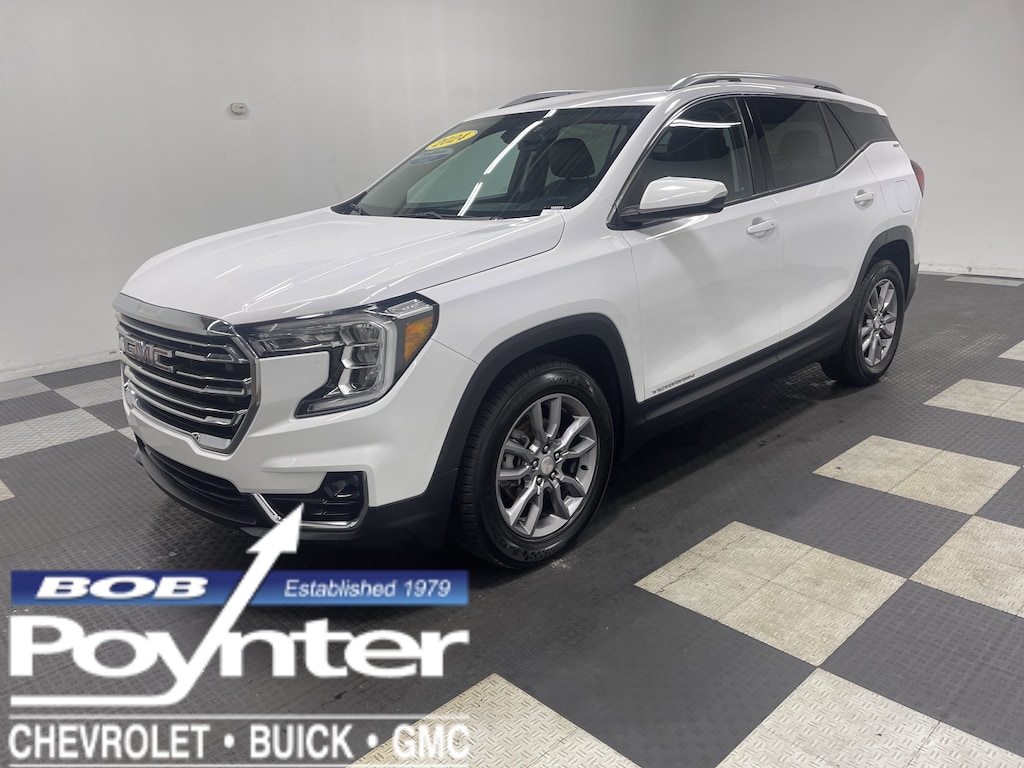 Look at this 2024 GMC Terrain SLT. Its Automatic transmission and Turbocharged Gas I4 1.5L/ engine will keep you going. This GMC Terrain comes equipped with these options: WHEELS, 18" X 7" (45.7 CM X 17.8 CM) SILVER PAINTED ALUMINUM (STD), TRANSMISSION, 9-SPEED AUTOMATIC 9T45, ELECTRONICALLY-CONTROLLED WITH OVERDRIVE (STD), TIRES, P225/60R18 ALL-SEASON BLACKWALL (STD), SUMMIT WHITE, SLT PREFERRED EQUIPMENT GROUP Includes Standard Equipment, SEATS, FRONT BUCKET (STD), JET BLACK, PERFORATED LEATHER-APPOINTED SEAT TRIM, ENGINE, 1.5L TURBO DOHC 4-CYLINDER, SIDI, VVT (175 hp [131.3 kW] @ 5800 rpm, 203 lb-ft of torque [275.0 N-m] @ 2000 - 4000 rpm) (STD), DELETED 3 YEARS OF ONSTAR REMOTE ACCESS, and AXLE, 3.47 FINAL DRIVE RATIO. See it for yourself at Bob Poynter GM, 1209 E Tipton St, Seymour, IN 47274.