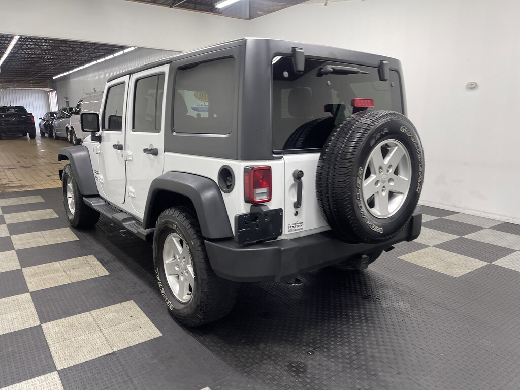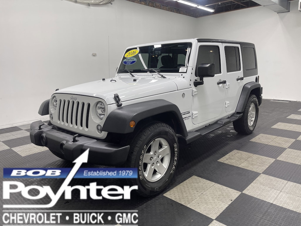 Look at this 2016 Jeep Wrangler Unlimited Sport. Its Automatic transmission and Regular Unleaded V-6 3.6 L/220 engine will keep you going. This Jeep Wrangler Unlimited has the following options: WHEELS: 17" X 7.5" ALUMINUM -inc: Tires: 17", TRANSMISSION: 5-SPEED AUTOMATIC (W5A580) -inc: Tip Start, Hill Descent Control, SIRIUS SATELLITE RADIO (subscription required), RADIO: 430 -inc: Remote USB Port, QUICK ORDER PACKAGE 24S -inc: Engine: 3.6L V6 24V VVT, Transmission: 5-Speed Automatic (W5A580), Auto Dim Mirror w/Reading Lamp, Front 1-Touch Down Power Windows, Power Heated Mirrors, Wheels: 17" x 7.5" Aluminum, Tires: 17", Leather Wrapped Steering Wheel, Chrome/Leather Wrapped Shift Knob, Power Convenience Group, Deep Tint Sunscreen Windows, Security Alarm, Power Locks, Remote Keyless Entry, MOPAR SLUSH MATS, ENGINE: 3.6L V6 24V VVT (STD), CONNECTIVITY GROUP -inc: Vehicle Information Center, Remote USB Port, Uconnect Voice Command w/Bluetooth, Tire Pressure Monitoring Display, BRIGHT WHITE CLEARCOAT, and BLACK, CLOTH SEATS W/ADJUSTABLE HEAD RESTRAINTS. See it for yourself at Bob Poynter GM, 1209 E Tipton St, Seymour, IN 47274.