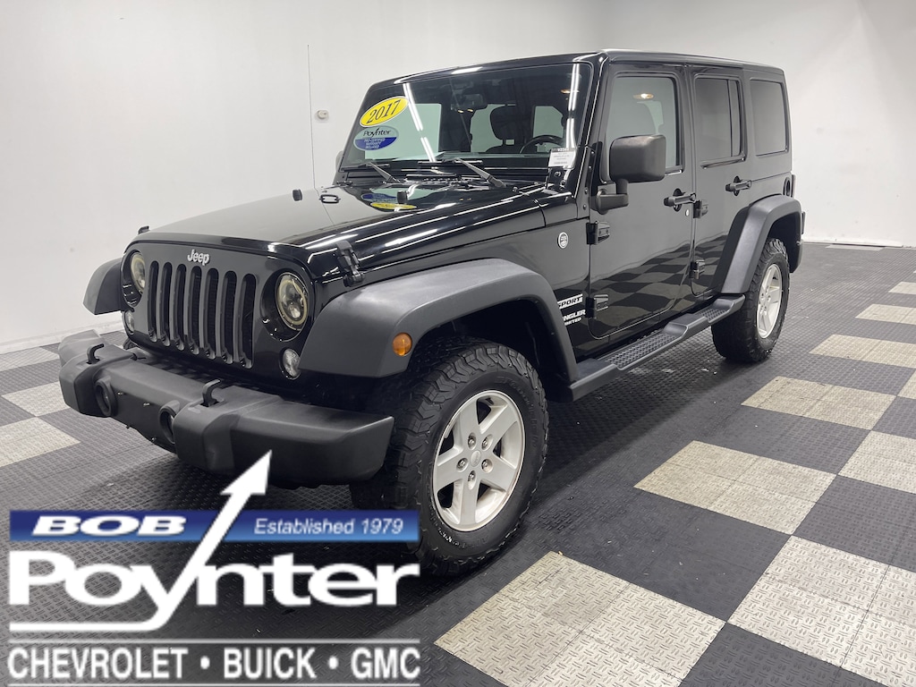 *4WD Hard Top CD Player Remote Start Heated Seats*Come see this 2017 Jeep Wrangler Unlimited Sport. Its Automatic transmission and Regular Unleaded V-6 3.6 L/220 engine will keep you going. This Jeep Wrangler Unlimited comes equipped with these options: WHEELS: 17" X 7.5" ALUMINUM, TRANSMISSION: 5-SPEED AUTOMATIC (W5A580) -inc: Tip Start, Hill Descent Control, SUPPLEMENTAL FRONT SEAT SIDE AIR BAGS, SIRIUS SATELLITE RADIO (subscription required), REMOTE START SYSTEM, RADIO: 430 -inc: Remote USB Port, QUICK ORDER PACKAGE 24S -inc: Engine: 3.6L V6 24V VVT, Transmission: 5-Speed Automatic (W5A580), Auto Dim Mirror w/Reading Lamp, Front 1-Touch Down Power Windows, Tires: P255/75R17 OWL On/Off Road, Power Heated Mirrors, Wheels: 17" x 7.5" Aluminum, Leather Wrapped Steering Wheel, Chrome/Leather Wrapped Shift Knob, Power Convenience Group, Deep Tint Sunscreen Windows, Security Alarm, Power Locks, Remote Keyless Entry, MOPAR SLUSH MATS, LED LIGHTING GROUP -inc: LED Fog Lamps, LED Reflector Headlamps, and JEEP TRAIL RATED KIT. Stop by and visit us at Bob Poynter GM, 1209 E Tipton St, Seymour, IN 47274.