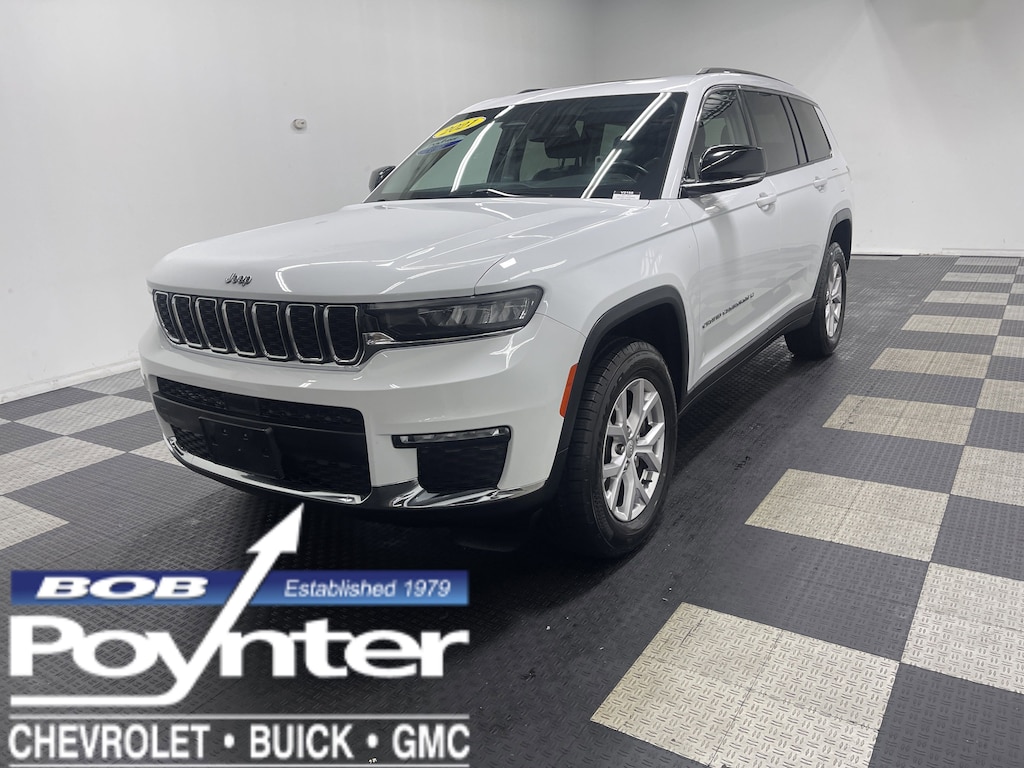 Look at this 2021 Jeep Grand Cherokee L Limited. Its Automatic transmission and Regular Unleaded V-6 3.6 L/220 engine will keep you going. This Jeep Grand Cherokee L has the following options: WHEELS: 18" X 8.0" FULLY PAINTED ALUMINUM 2 (STD), TRANSMISSION: 8-SPEED AUTOMATIC (850RE) (STD), TIRES: 265/60R18 BSW A/S LRR (STD), RADIO: UCONNECT 5 NAV W/10.1" DISPLAY -inc: premium 9 speaker alpine audio system, 10.1" Touchscreen Display, 9 Amplified Speakers w/Subwoofer, HD Radio, GPS Navigation, 506 Watt Amplifier, Connected Travel & Traffic Services, QUICK ORDER PACKAGE 22E -inc: Engine: 3.6L V6 24V VVT UPG I w/ESS, Transmission: 8-Speed Automatic (850RE), GLOBAL BLACK, CAPRI LEATHER SEATS, ENGINE: 3.6L V6 24V VVT UPG I W/ESS (STD), DUAL PANE PANORAMIC SUNROOF -inc: Interior Rear Facing Camera, BRIGHT WHITE CLEARCOAT, and Wheels: 18" x 8.0" Fully Painted Aluminum 2. Stop by and visit us at Bob Poynter GM, 1209 E Tipton St, Seymour, IN 47274.