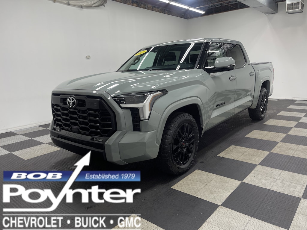 *4WD Tow Package Leather *ALG Residual Value Awards, Residual Value Awards. Delivers 22 Highway MPG and 17 City MPG! This Toyota Tundra 4WD boasts a Twin Turbo Regular Unleaded V-6 3.4 L/210 engine powering this Automatic transmission. Wheels: 18" Alloy, Wheels w/Silver Accents, Vehicle Stability Control (VSC) Electronic Stability Control (ESC).*This Toyota Tundra 4WD Features the Following Options *Variable Intermittent Wipers, Urethane Gear Shifter Material, Trip Computer, Transmission: 10-Speed Electronic Controlled Auto -inc: intelligence (ECT-i), sequential shift mode, uphill/downhill shift logic and TOW/HAUL driving modes, Transmission w/Driver Selectable Mode and Oil Cooler, Trailer Wiring Harness, Tires: 265/70R18, Tire Pressure Monitor System (TPMS) Low Tire Pressure Warning, Tailgate Rear Cargo Access, Streaming Audio.*Stop By Today *Test drive this must-see, must-drive, must-own beauty today at Bob Poynter GM, 1209 E Tipton St, Seymour, IN 47274.